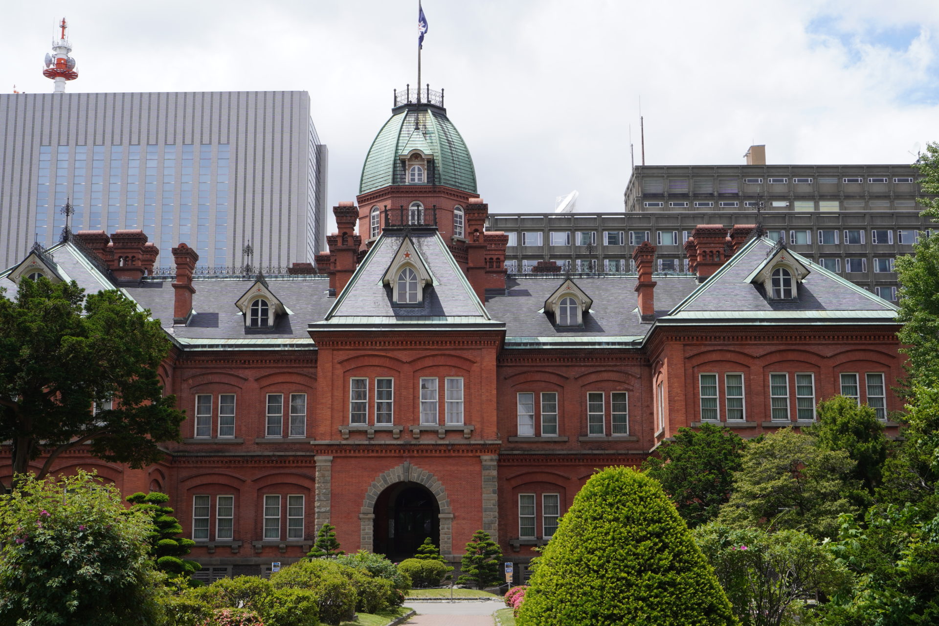 札幌駅から南へ数ブロック。突如赤レンガで整備されたエリアが現れます。こちら、北海道庁の旧庁舎。地元では「赤レンガ」と親しまれています。開拓時代のものなのでしょうか。重厚感が感じられます。