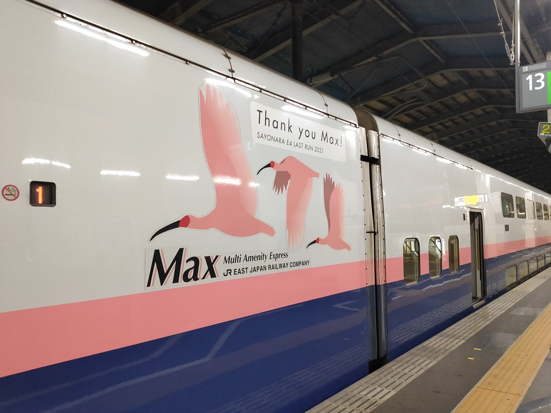 きっぷに列車名を残すために指定券を購入。新潟まで約45分、1階席と2階席を移動しつつ最後のE4系を楽しみました。