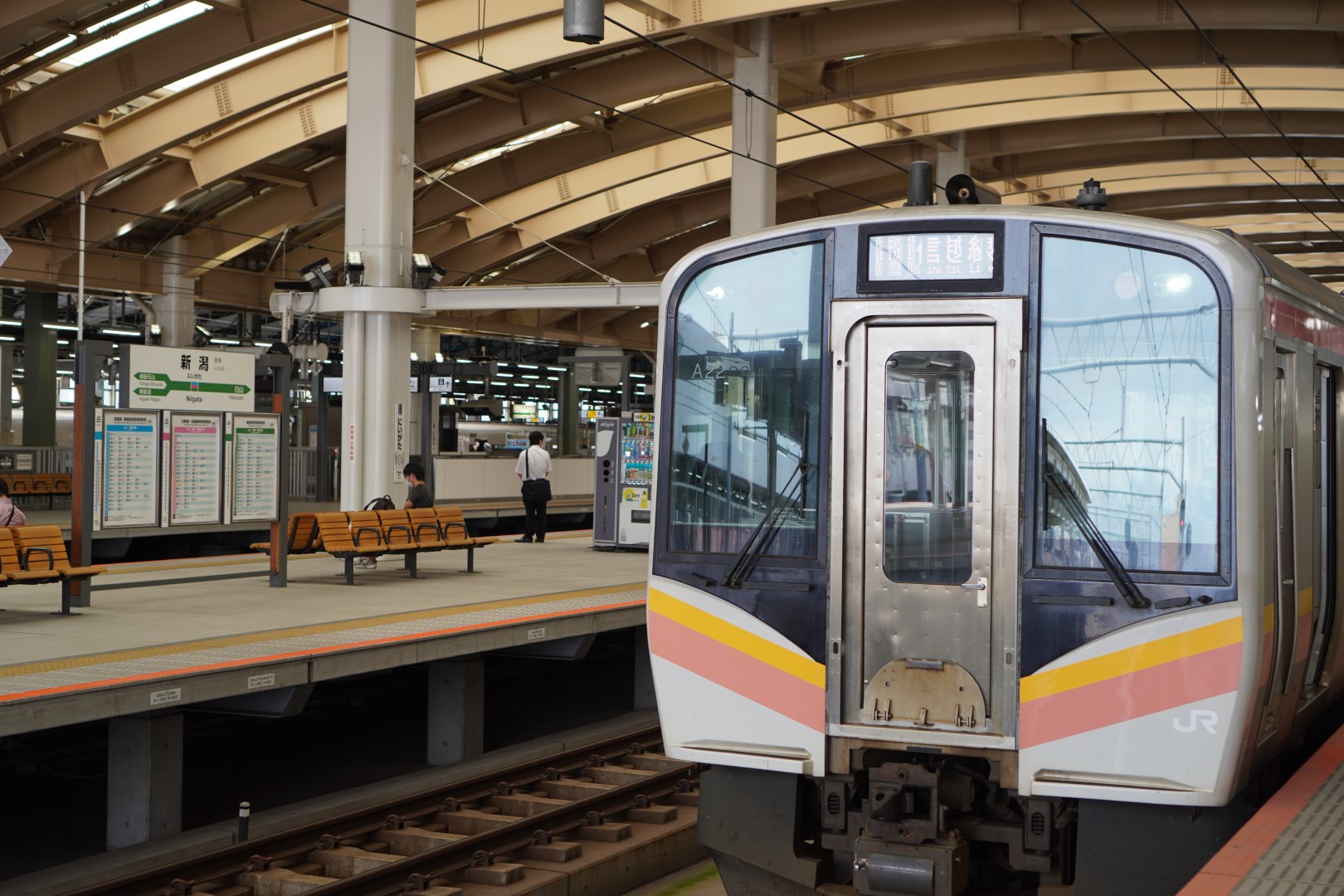 そんなきっぷを片手にホームへ。新潟駅は現在高架化工事の真っ最中。在来線ホームは高架化済みで、現在は駅ビルを整備中のようでした。信越本線の列車でまずは長岡を目指します。