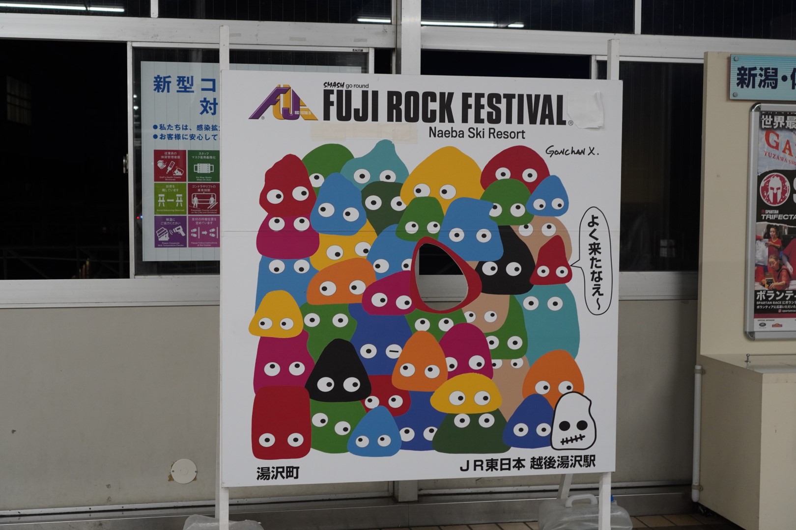 実はこの越後湯沢駅、8/20~8/22に苗場スキー場で開催されたフジロックの最寄り駅。翌日の夜なので閑散としていましたが、ポスターはまだ残っていました。