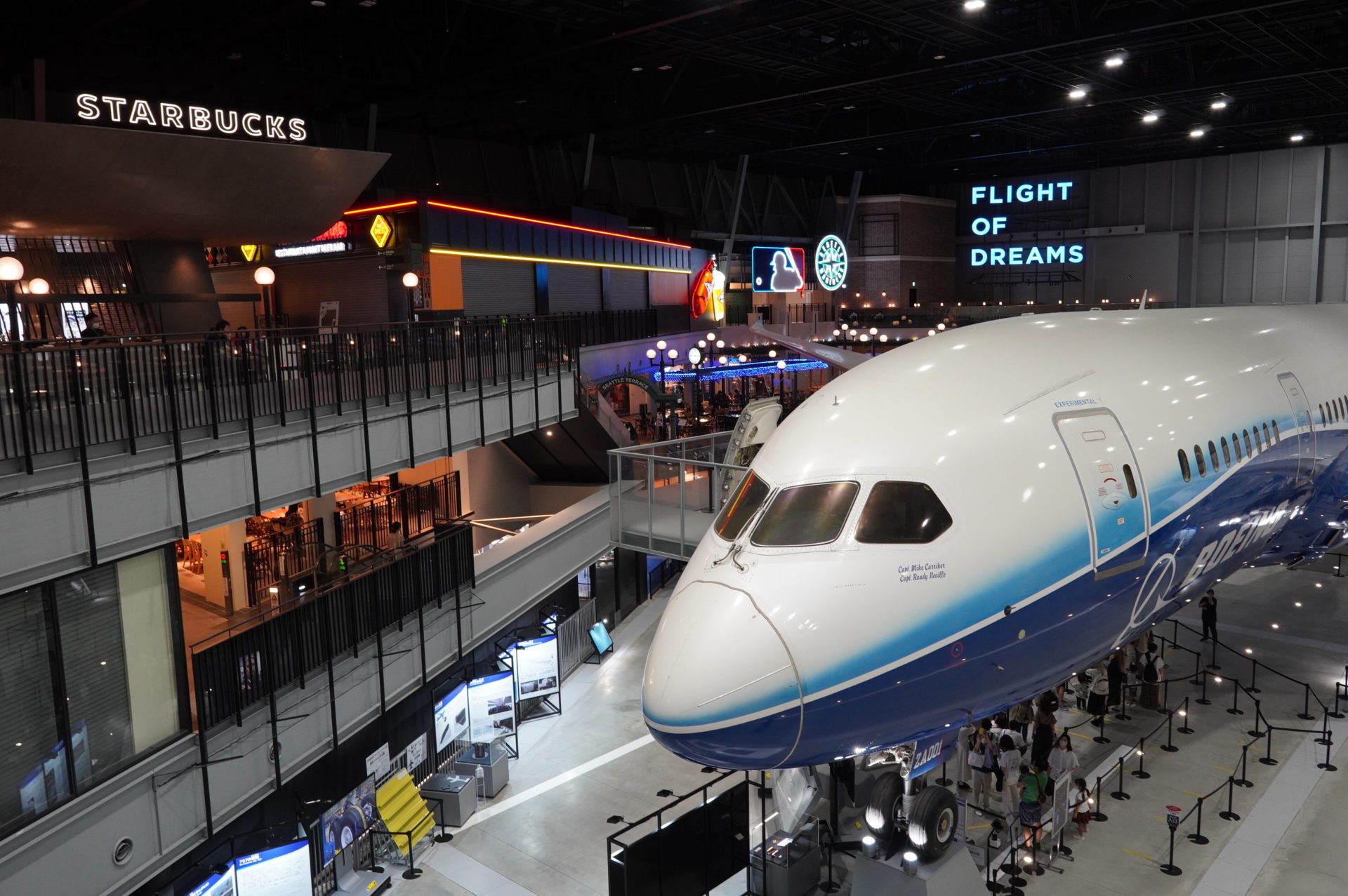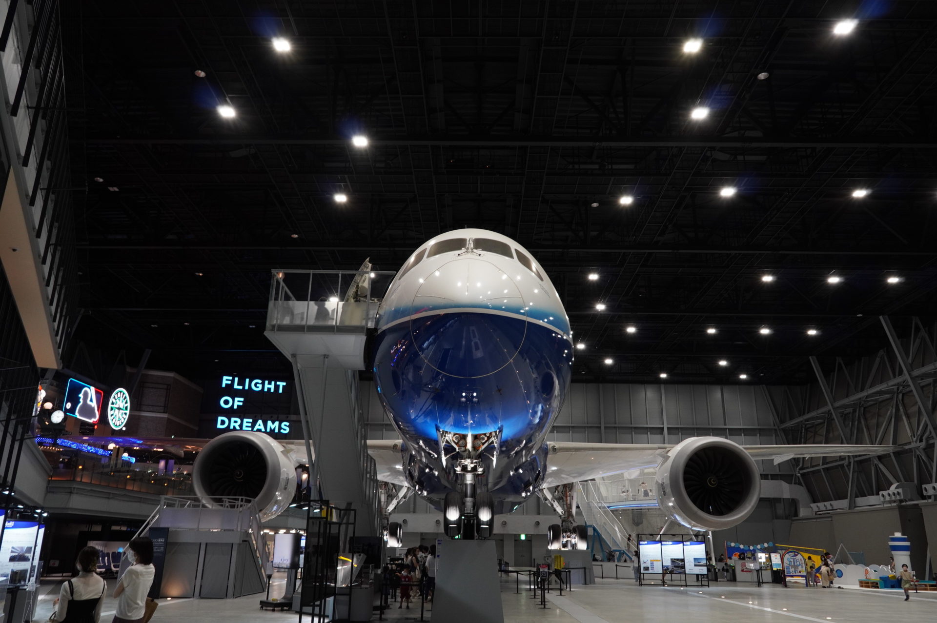 セントレアで行きたかったのが、「Flight of dreams」という施設。なんと、ボーイング787の初号機が展示されており間近で見学することができます。