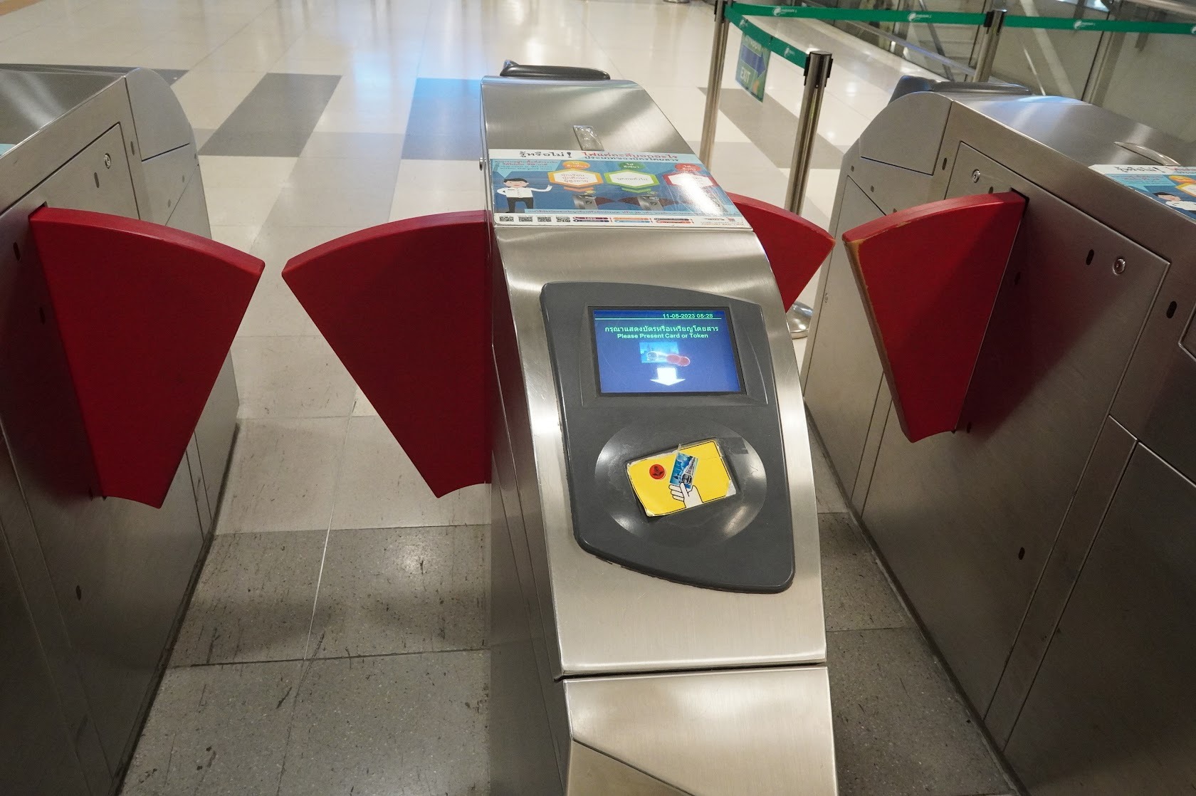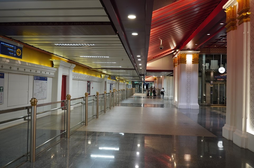 空港の地下にあるエアポートレイルリンクの駅へ。市内中心部まで30分。券売機でお金を払うと丸いプラスチック製のコイン(トークンと呼ぶそうです)が出てきました。改札にタッチすると入場できます。45バーツ。(180円)