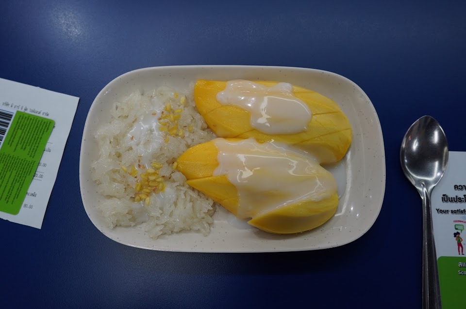 もち米とマンゴーに甘いソース(練乳みたいな?)がかかった食べ物。ちょっと多かったけど大満足。120バーツ。(480円)