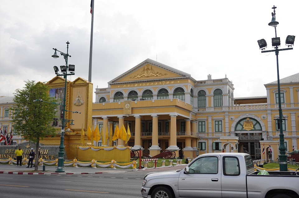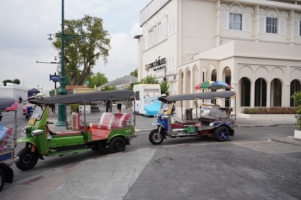 MRTのSanam Chai駅を降りて20分ほど歩きます。駅前には観光客を待つトゥクトゥクがずらり。豪華な建物もずらり。