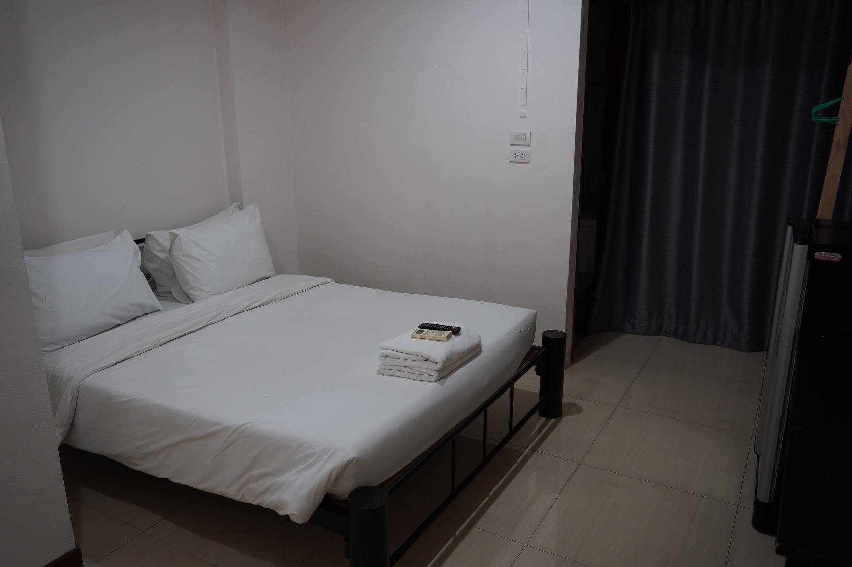 1泊2000円のホテル。ベッドはキングサイズ。