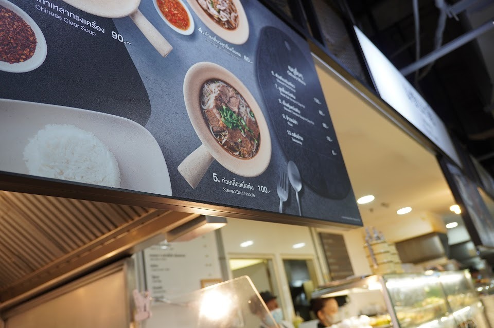 Stewed beef noodleと書いてありました。直訳すると「牛肉煮込み麺」100バーツ。(400円)