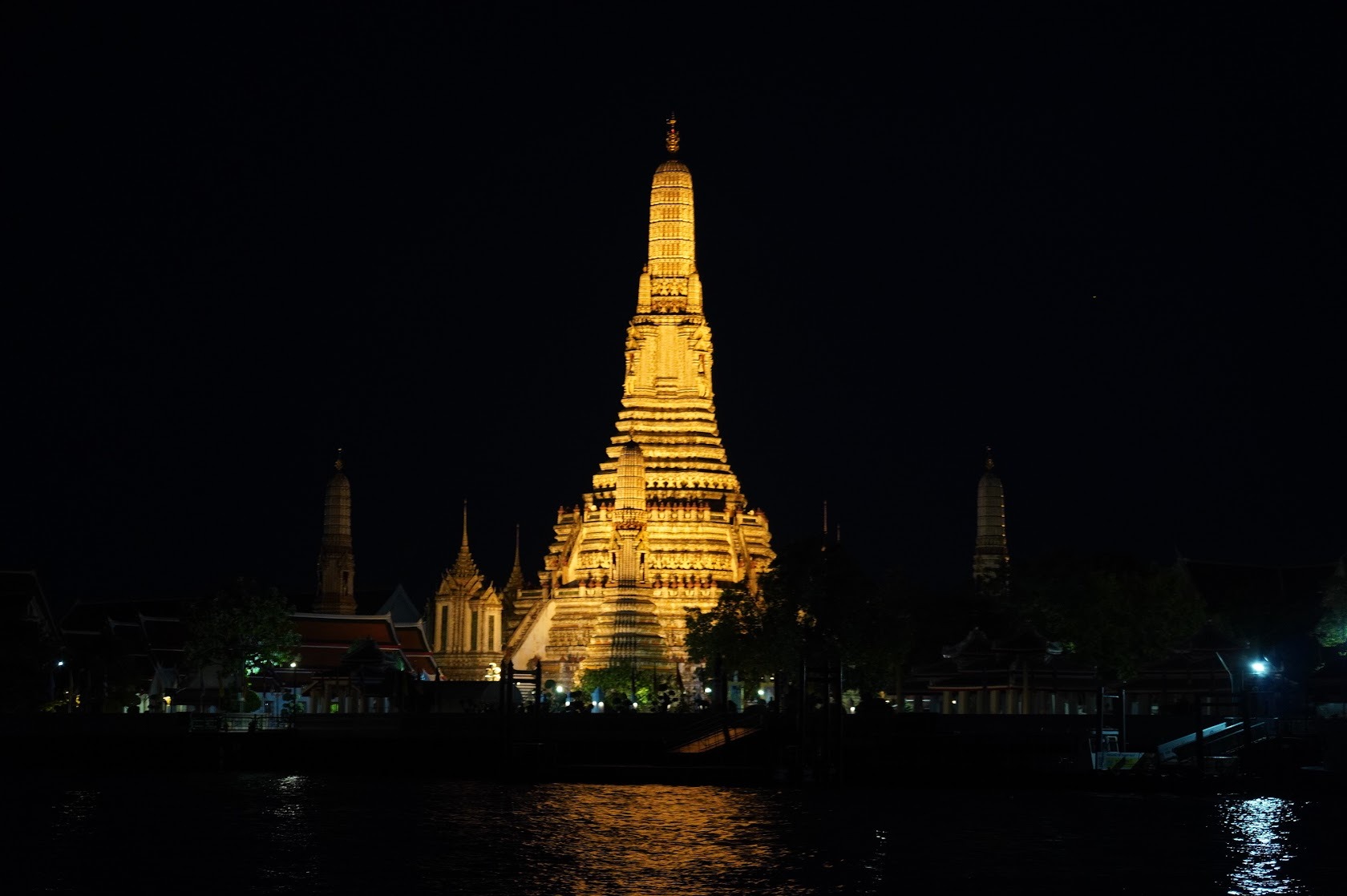 15分ほど船に揺られてワット・アルンへ。ライトアップを見に来ました。
