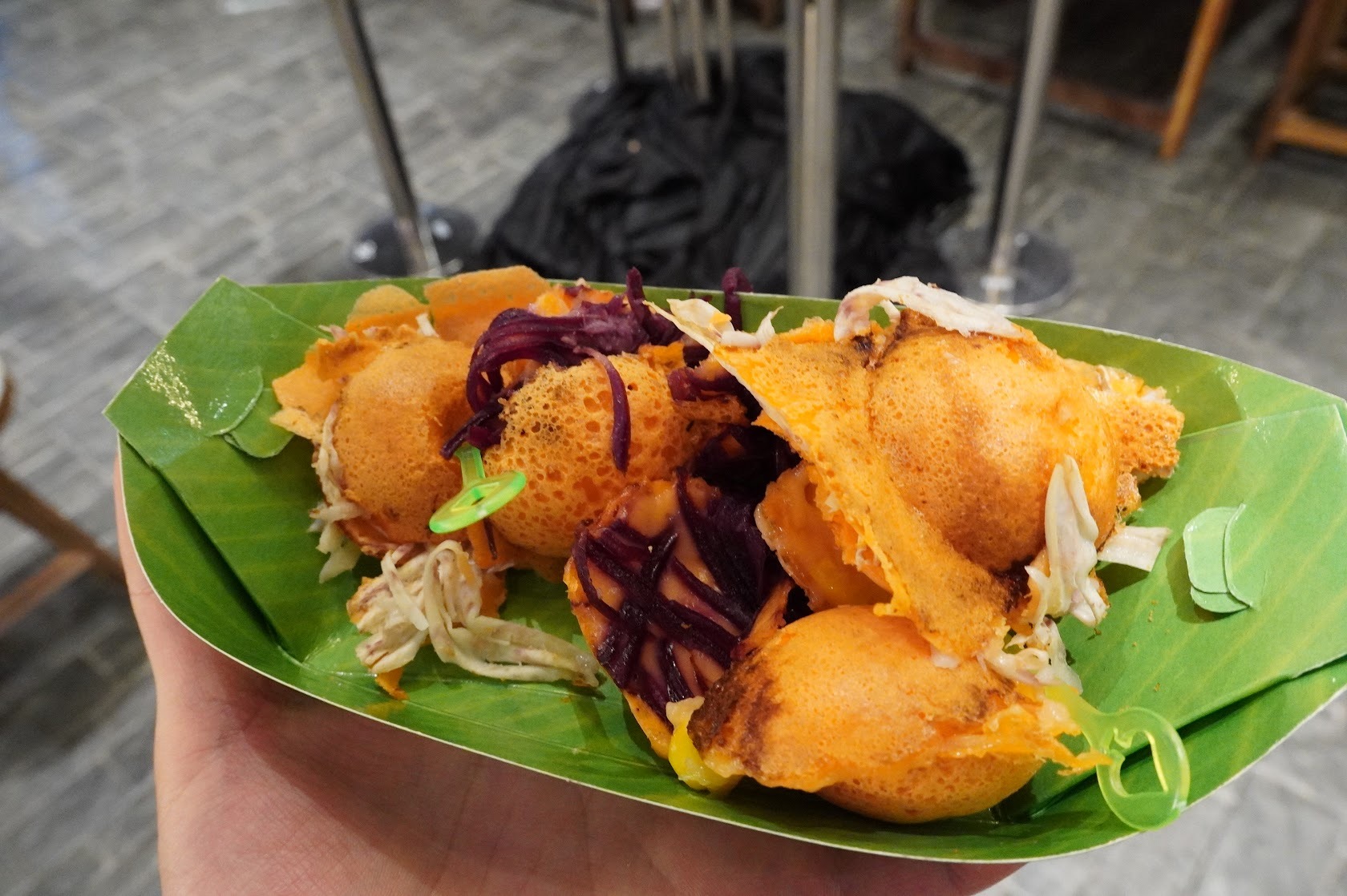 たこ焼き器で作るおやつ。大阪人として気になって店員に「これなに?」と聞いてしまった。60バーツ。(240円)