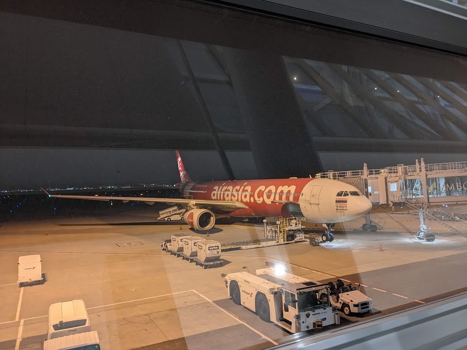 関西空港からバンコク・スワンナプーム国際空港へ。エアアジアの深夜便を予約しました。チェックインに15分、保安検査&出国審査に5分程度。スムーズに制限エリア内に入ることができました。
